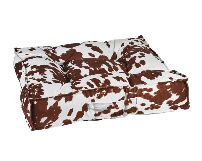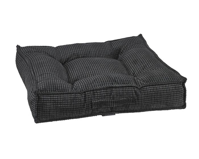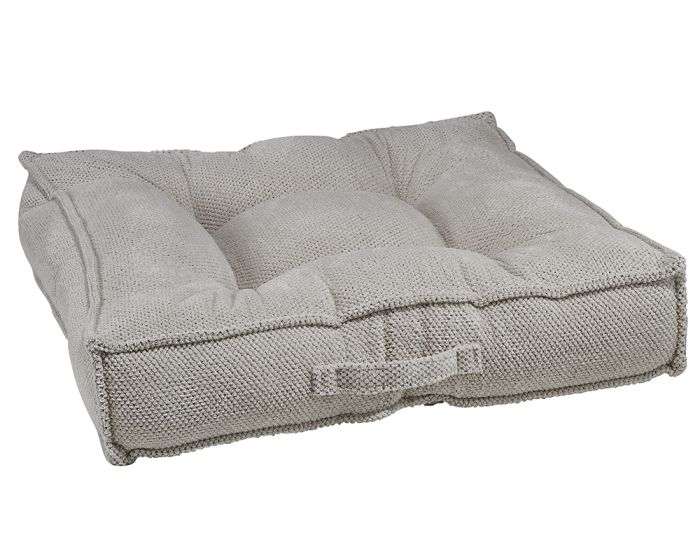 Dogs are sure to be drawn to the tufted square fibre topped foam center cushion and will be pampered with the plush overstuffed outer bolsters. The Piazza Bed captures the sleek, space saving modern design of traditional flat cushions with the added security and comfort of removable bolsters. The cover features a convenient carry handle and is completely removable for washing and drying.