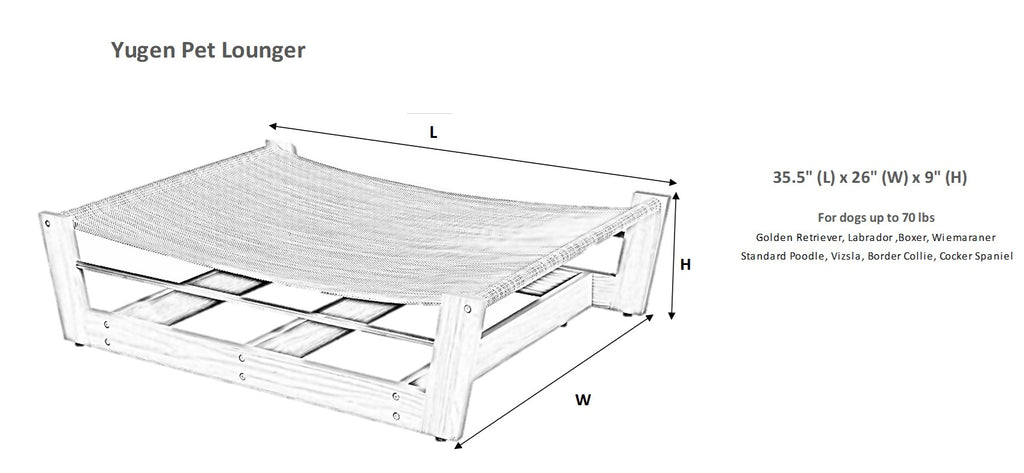 This modern Zen-like raised dog bed seamlessly blends functionality, style & comfort, providing your dog with a place for relaxation and rejuvenation. The Yugen Lounger is a sleek minimalist design with clean lines and neutral tones. The Yugen Lounger is the perfect addition to any indoor or covered outdoor space. Assembly required.