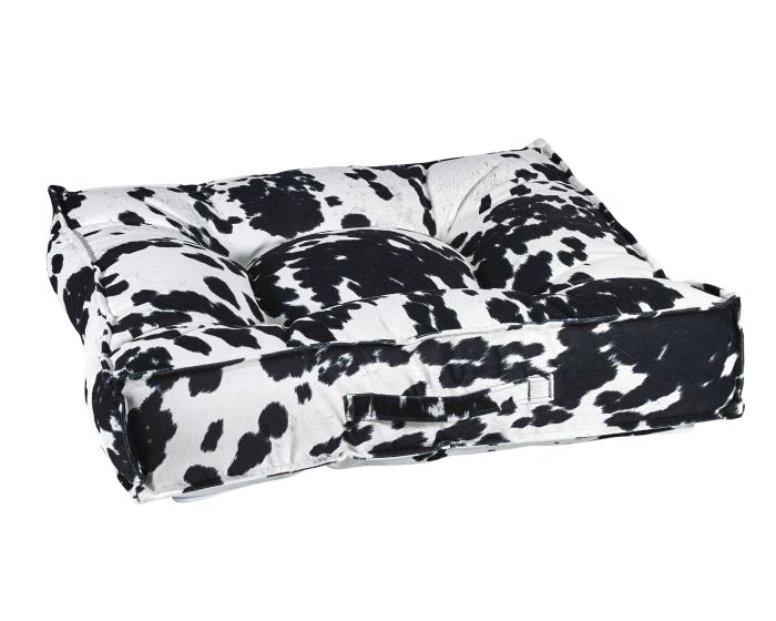 Dogs are sure to be drawn to the tufted square fibre topped foam center cushion and will be pampered with the plush overstuffed outer bolsters. The Piazza Bed captures the sleek, space saving modern design of traditional flat cushions with the added security and comfort of removable bolsters. The cover features a convenient carry handle and is completely removable for washing and drying.